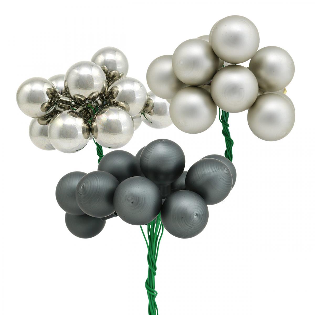 Produktname: Mini Weihnachtskugeln Anthrazit, Silber Spiegelbeeren Ø20mm 140 St