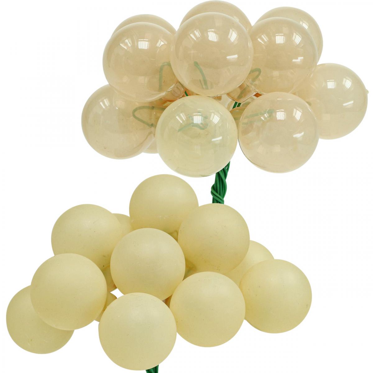 Bei Floristen auch als Spiegelbeeren bekannt, haben diese Mini-Weihnachtskugeln statt dem typischen Aufhänger einen Metalldraht. Somit lassen sich die kleinen Kugeln am Draht spielend leicht zum Beispiel um Tannenzweige und Sträucher aus getrockneten Pflanzen wickeln. Der Draht ist auch optimal geeignet, um die Spiegelbeeren direkt in eine Gesteckunterlage aus Steckschaum oder Styropor zu stecken.
