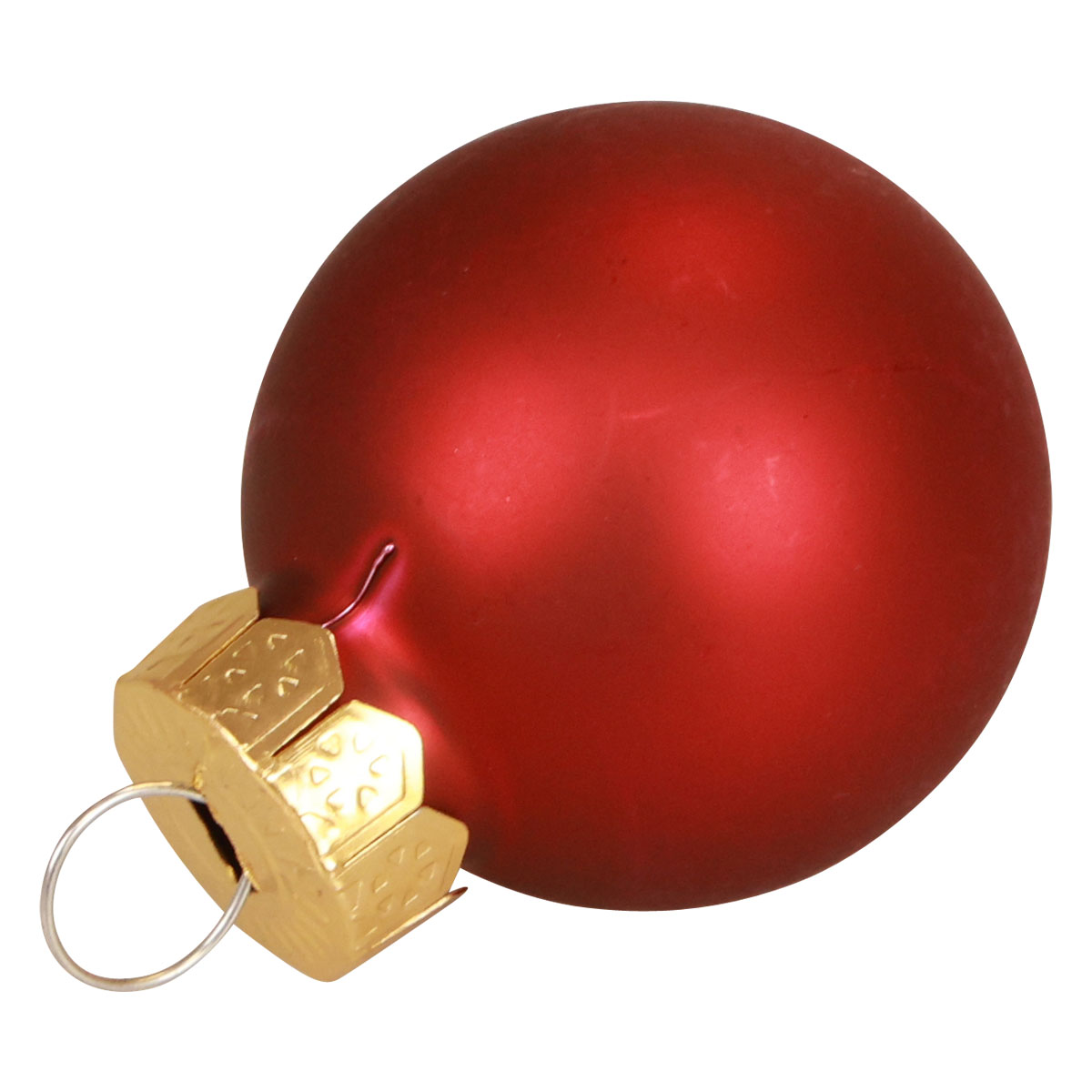In einem dunklen Rot zeigen sich die Mini-Weihnachtskugeln aus Glas. Die roten Glaskugeln sind zur Hälfte matt und glänzend.