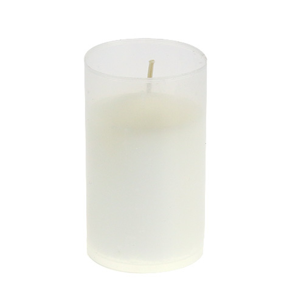 Die Kerzen befinden sich in einem farblosen Zylinder aus Kunststoff, der oben offen ist. Über die Öffnung kann der Docht angezündet werden. Durch die hohen Außenwände ist dieser etwas vor Wind geschützt und damit bestens für eine Grablaterne beziehungsweise für eine Grableuchte geeignet.