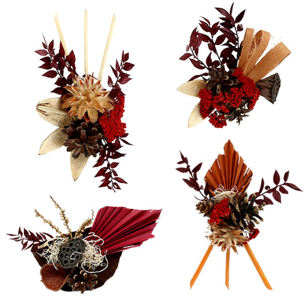 Die vierfach sortierten Natur-Auflagen befinden sich zu insgesamt 28 Stück in einer großen Box. Jedes Motiv ist 7-mal in diesem Mix vorhanden und besteht zum größten Teil aus Naturprodukten, die in Größe und Farbe und Form leicht abweichen können. So haben die Gesteckauflagen Größen zwischen ungefähr 20 bis circa 25 Zentimetern.