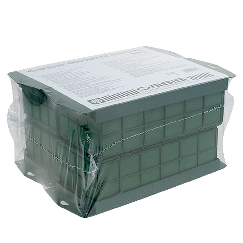 Der OASIS® Steckschwamm Dekorette Grande mit Klebestreifen hat ungefähr die Maße von 29 Zentimeter auf 12 Zentimeter auf 8,5 Zentimeter. Die Ziegel selbst haben in etwa die Maße von 23 Zentimeter auf 11 Zentimeter auf 8 Zentimeter. Die Gesteck-Grundlage kommt im praktischen 4er-Set zu Ihnen. Damit können Sie bei einer größeren Veranstaltung auch gleich mehrere Blumenarrangements gestalten. Diese lassen sich dann auch dekorativ an Wänden anbringen.