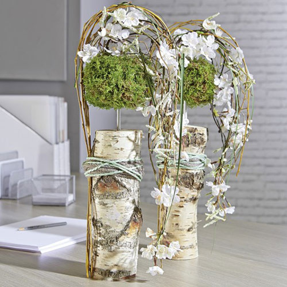 Mit kleinen, verschnörkelten Tabletts oder Deko-Tellern in Weiß ergeben sich tolle Deko-Möglichkeiten. Mit Foamrosen, Perlen und Organzabändern gestalten Sie zum Beispiel eine wunderschöne Tisch-Deko für eine Hochzeit. Hierfür können Sie auch mehrere Zylinder mit Heiß- oder Kaltkleber übereinander stapeln. An den Seiten befestigen Sie Kunststoff-Blätter mit Nadeln oder Patenthaften. Den oberen Teil füllen Sie dann mit Blüten auf. Noch ein schönes Schleifenband hinzufügen - fertig ist die süßeste Tischdekoration. Ebenso lässt sich die zylinderförmige Steckmasse mit Rindenband, Bast und Kunst-Beeren aufbereiten. Auch Weihnachtsband, Zimtstangen und künstliche Stechpalmen-Zweige passen toll zum Zylinder-Steckmoos. So entsteht mit wenigen Handgriffen ein toller Hingucker für Schaufenster, Hotelrezeption oder Wartebereich. Mit dem Set können Sie gleich mehrere der niedlichen Eyecatcher anfertigen.