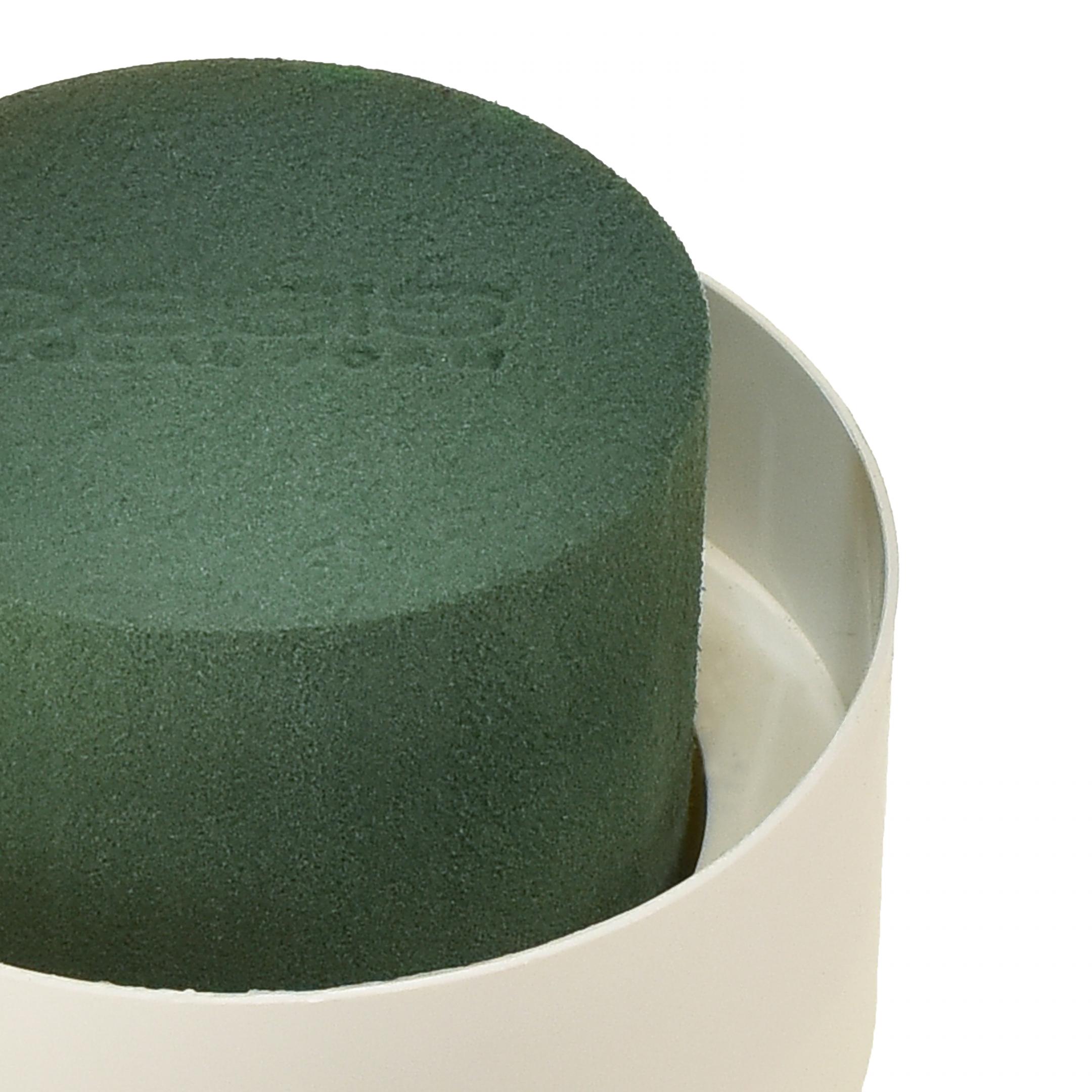 Bei OASIS® Table Design Viva handelt es sich um ein Set aus 12 identisch verarbeiteten Gesteckunterlagen, die jeweils aus hochwertigem Nasssteckschaum und einer robusten Kunststoffschale bestehen. Sie besitzen je einen Gesamtdurchmesser von etwa 11 Zentimetern und sind ungefähr 7 Zentimeter hoch, wobei die Steckschaumzylinder circa 7,5 Zentimeter im Durchmesser messen.