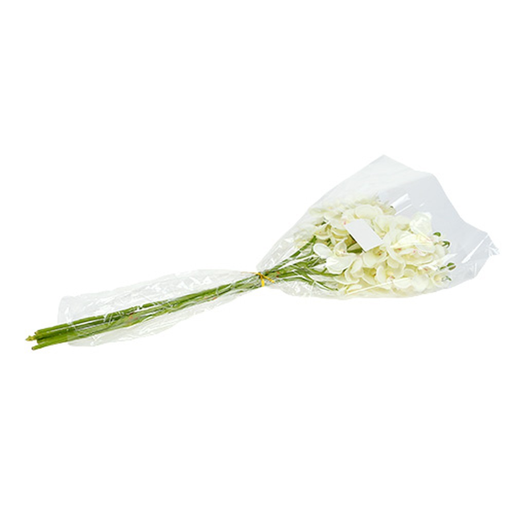 Die Blüten der creme-weißen Orchideen bestehen aus realistisch texturiertem Stoff und sind mit kleinen Knospen und grünen Stängeln aus stabilem Kunststoff ausgestattet. Geliefert werden sie in einem Bund zu insgesamt 6 Stück. Eine Orchidee ist jeweils ungefähr 57 Zentimeter lang und besitzt mehrere Zweige mit Blüten.