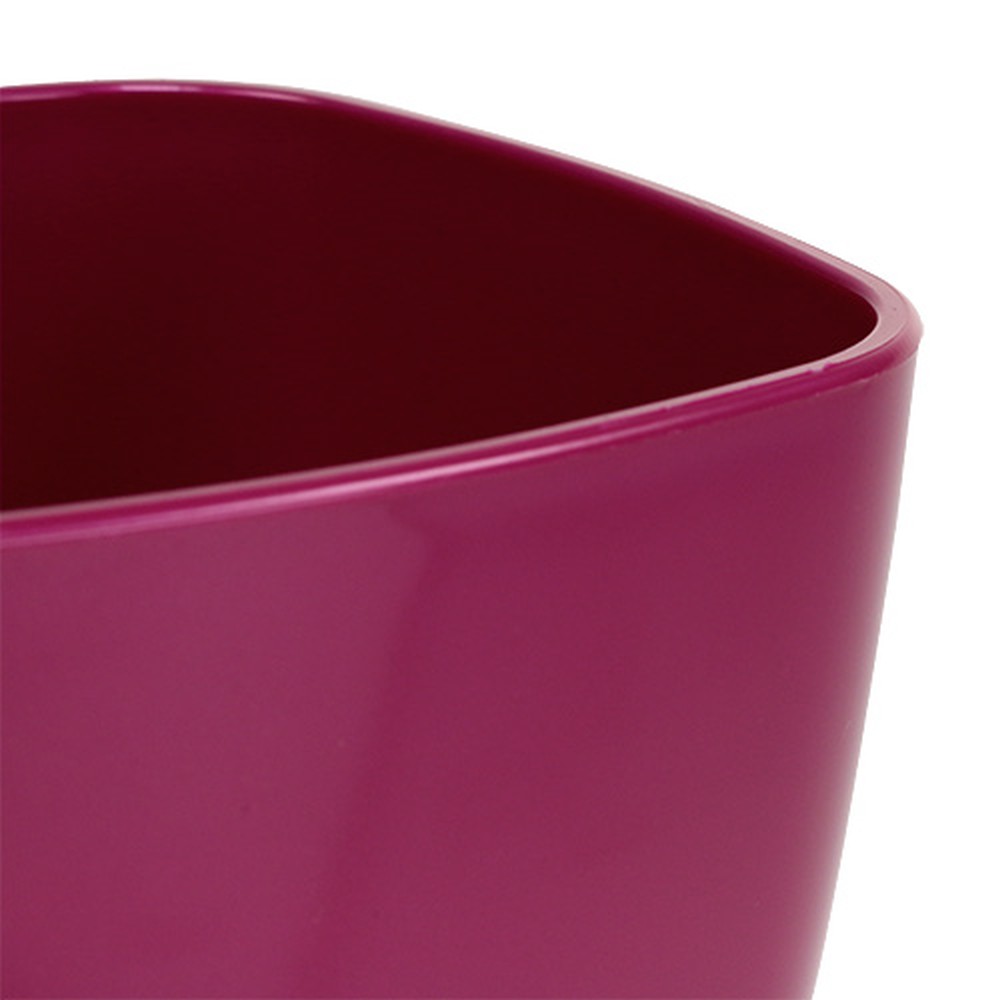 Der glänzende Orchideentopf in der trendigen Farbe Kirsche hat eine Höhe von etwa 17 Zentimetern und einen Öffnungsdurchmesser von circa 12,5 Zentimeter, wobei die Stellfläche einen Durchmesser von ungefähr 7,5 Zentimeter besitzt.