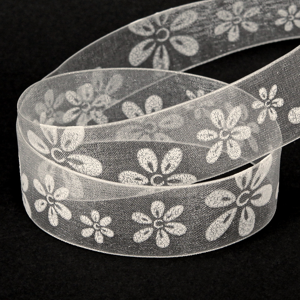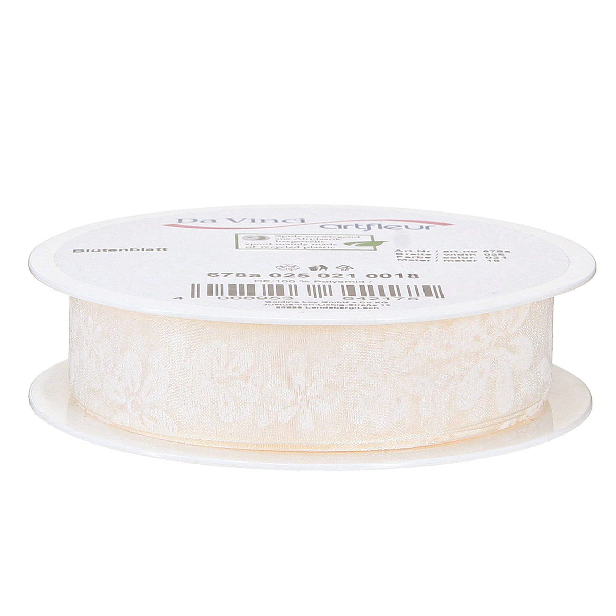 Produktname: Organzaband Blumen Geschenkband Creme 25mm 18m