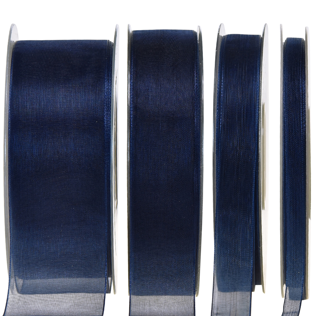 Organzaband Geschenkband Dunkelblau Band Blau Webkante 50m