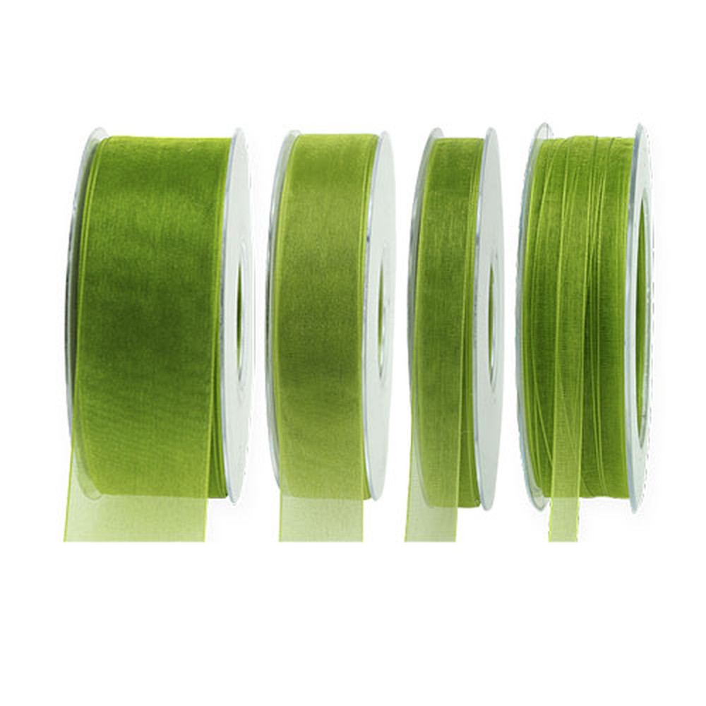 Organzaband Grün Geschenkband Band Webkante Olivgrün 50m