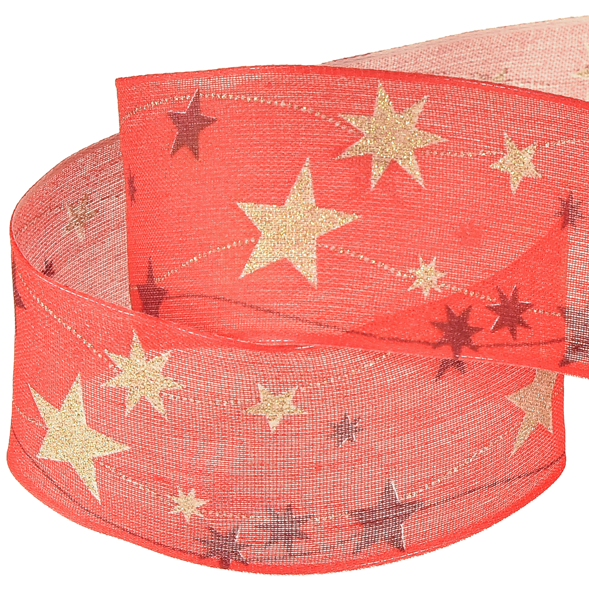 Weihnachtsband Rot Band mit Sternen Drahtkante 40mm 15m