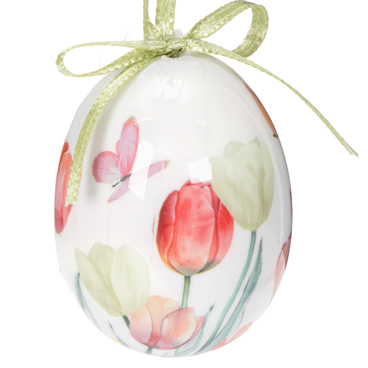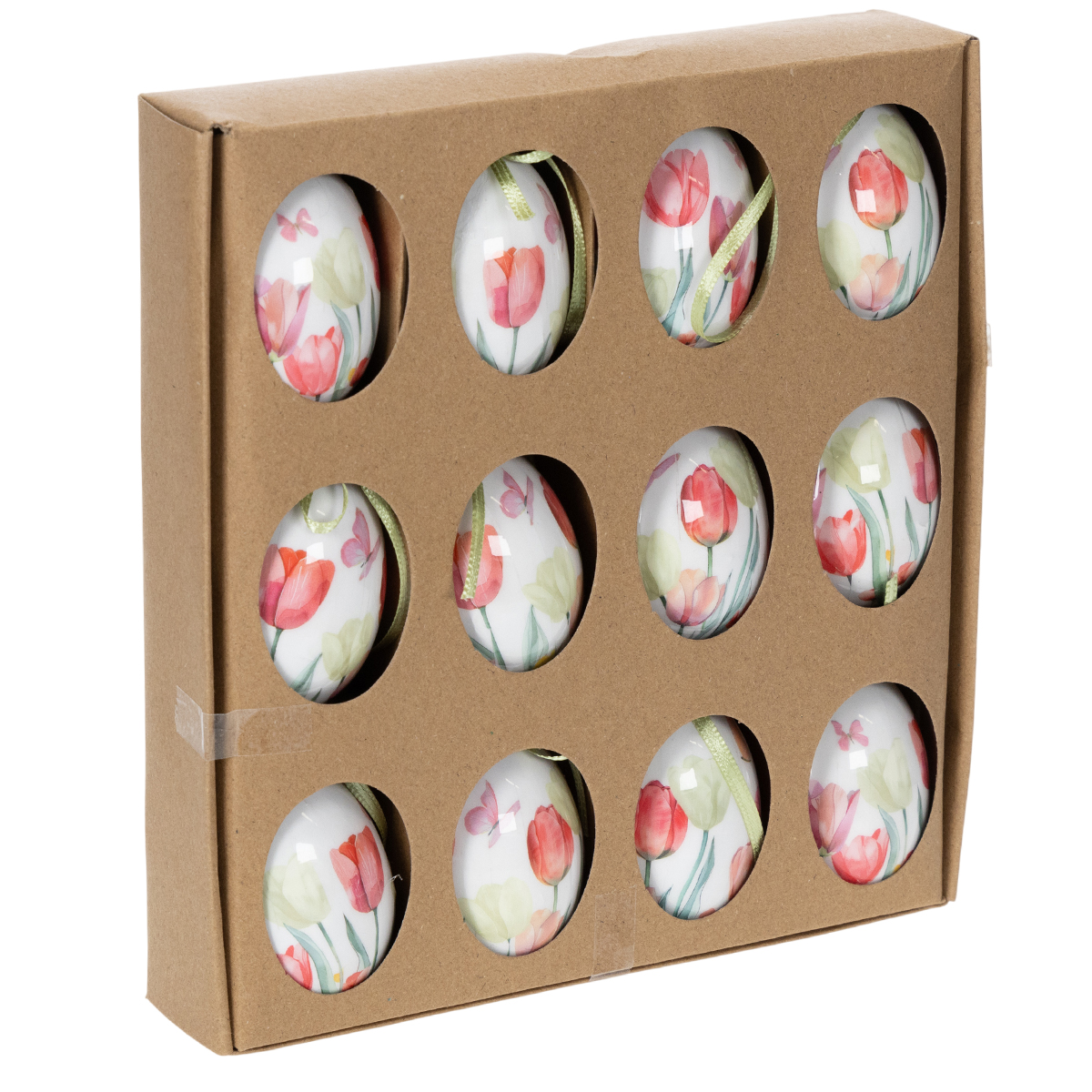 Osterei Dekoration Tulpenmotiv mit Band zum Aufhängen und Frühlingsdeko 6cm 12St
