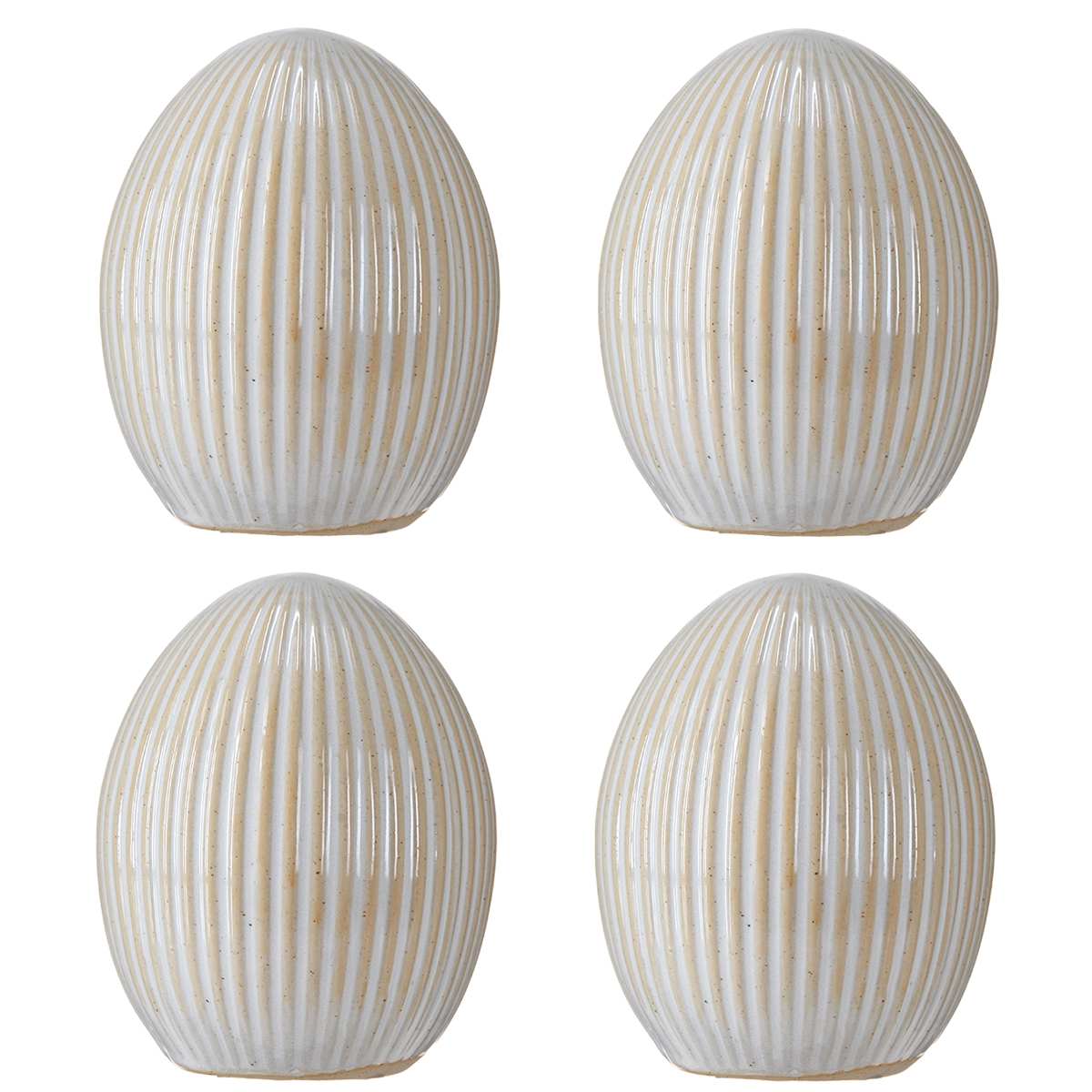 Produktname: Ostereier mit Rillen Keramik Deko Ei Weißgrau 7,5×9cm 4 St