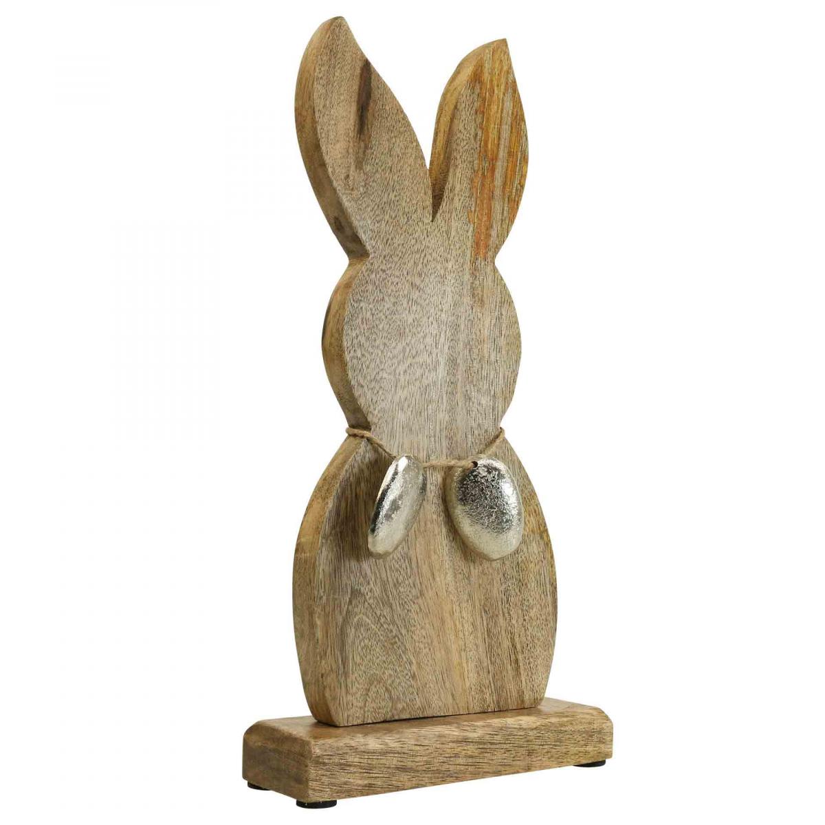 Denn nur die verdientesten Osterhasen bekommen das Abzeichen mit dem silbernen Ei. Der Hase ist für die Osterdeko als markante Silhouette aus massivem Mangoholz gearbeitet und sitzt auf einem zuverlässigen Aufsteller. So ist der Holzhase bereit fürs Nest.