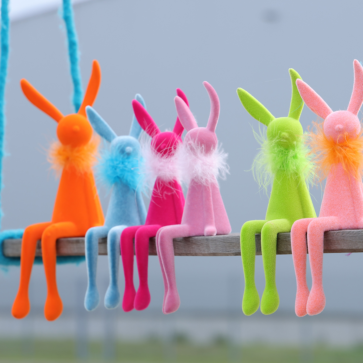 Farbenfrohe Dekoration für Ihr Zuhause: Osterhasen-Kantenhocker in Lachs und Orange