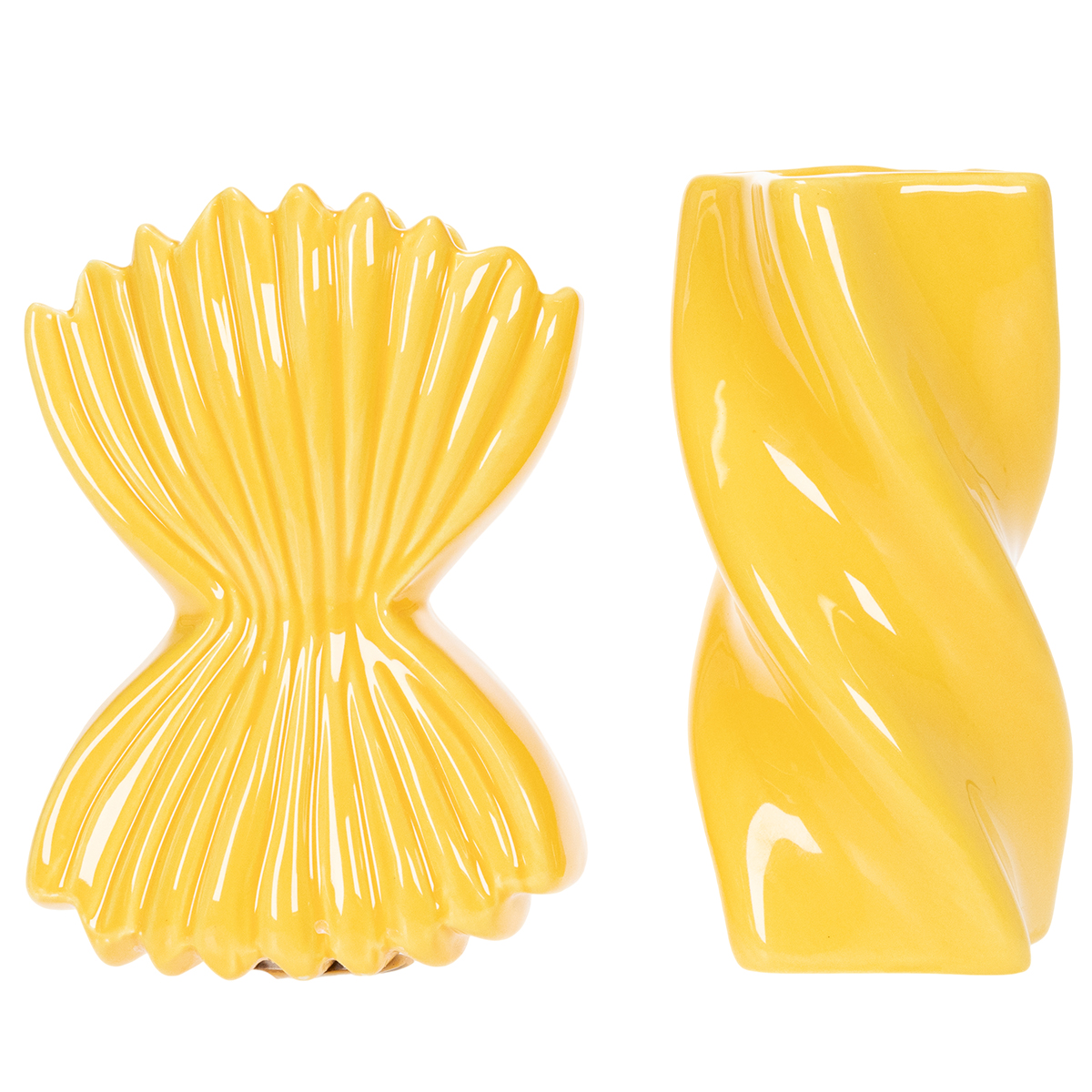 Diese dekorativen Keramik-Vasen bestechen auf den ersten Blick mit ihrem außergewöhnlichen Design, das von der spielerischen Form beliebter italienischer Pasta inspiriert wurde. Perfekt für Liebhaber origineller Dekorationen und moderner Designerstücke! Die Kombination aus lebendigem Gelb und detaillierter Formgebung macht die Vasen zu einem stilvollen Accessoire für mediterrane Wohnräume oder Büros. Kombinieren Sie diese Designerstücke mit einer schlichten Tischdecke oder mediterraner Dekoration für ein harmonisches Gesamtbild.