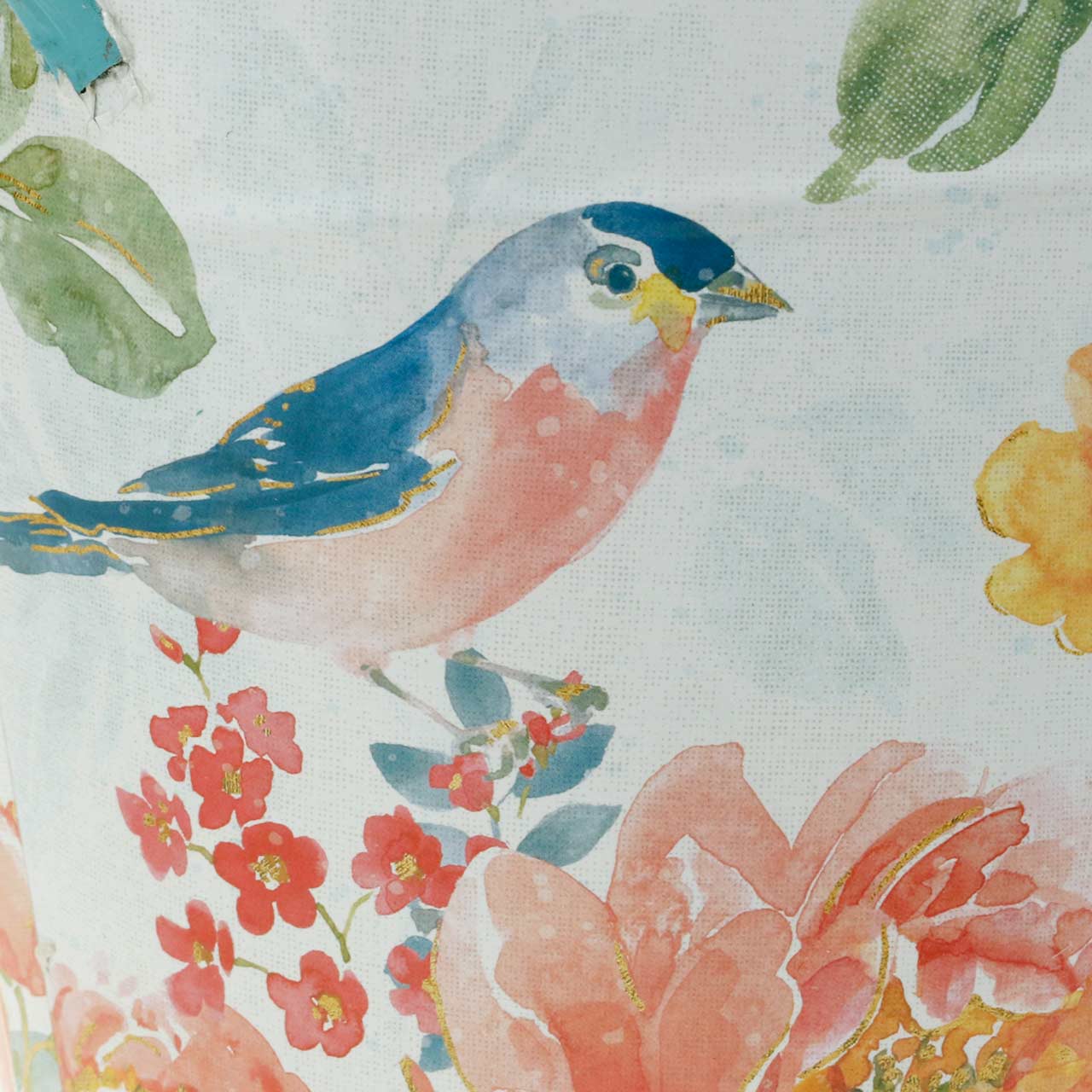 Die Rosen, Blüten und das bunte Vögelchen auf dem ovalen Pflanztopf begeistern nicht nur im Frühling, sondern auch in einer sommerlichen Atmosphäre. Kleiden Sie das Gefäß mit Folie aus. Es bietet außerdem reichlich Platz für eine Drainage-Schicht. So können Sie den Metalltopf bepflanzen oder als Grundlage für ein Gesteck oder eine frühlingshafte Deko mit Zweigen und passenden Aufhängern nutzen. Je nach Verwendung legen Sie einen Steckschaumziegel in den Vintage-Topf. So können Sie Zweige, exotische Naturdeko oder Seidenblumen einen zuverlässigen Halt in dem Übertopf bieten.