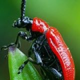 Maiglöckchenhähnchen Liliceris merdigera (Familie Blattkäfer – Chrysomlidae) Die adulten Maiglöckchenhähnchen...