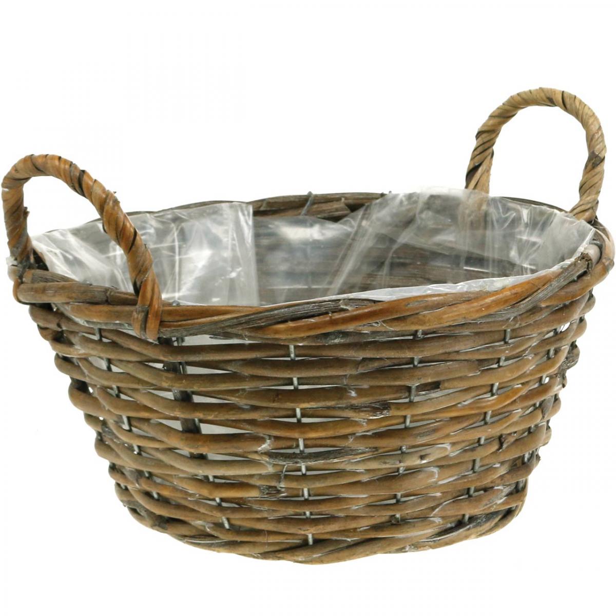 Produktname: Pflanzgefäß, Korb mit Griffen Shabby Chic Natur, Weiß gewaschen H14cm Ø30cm