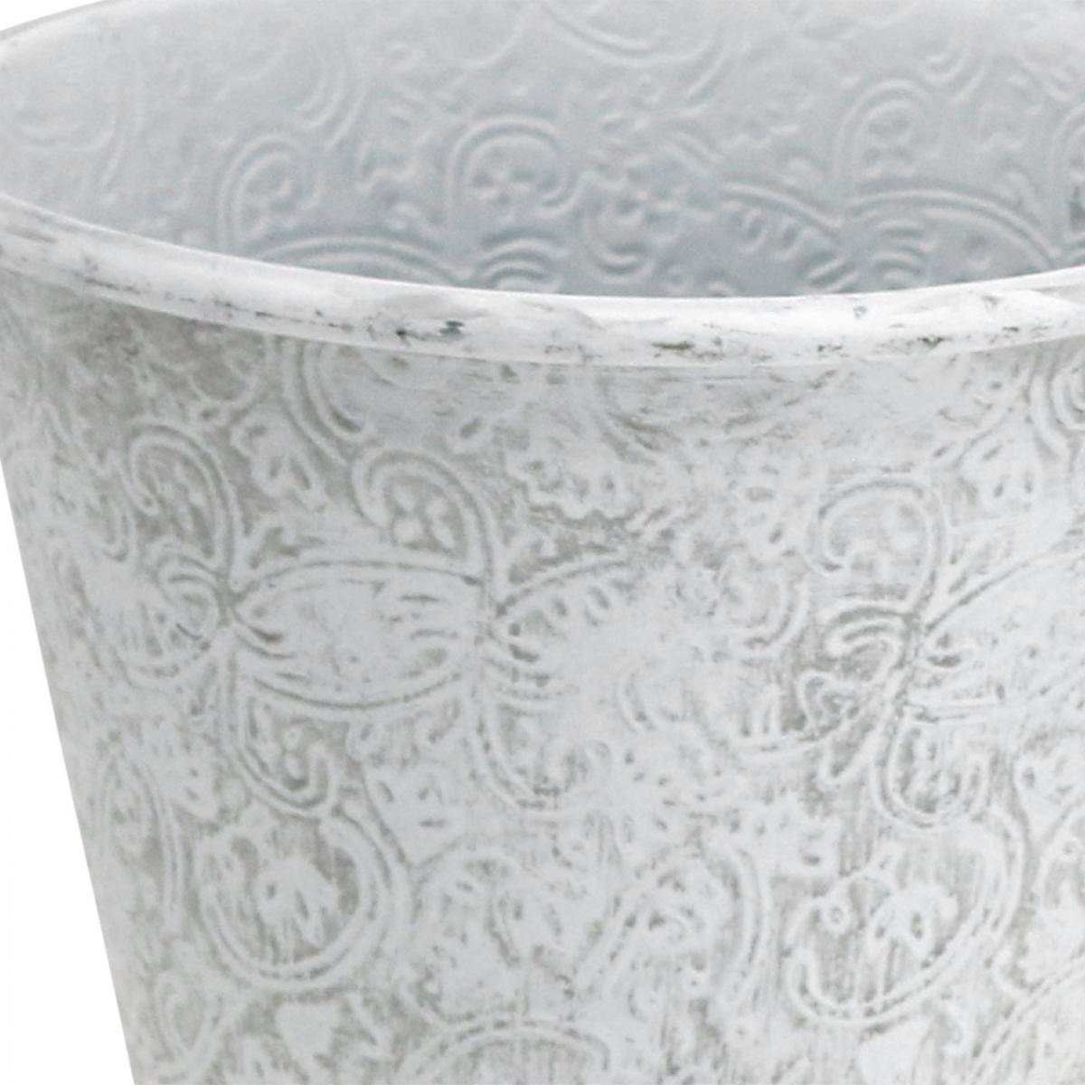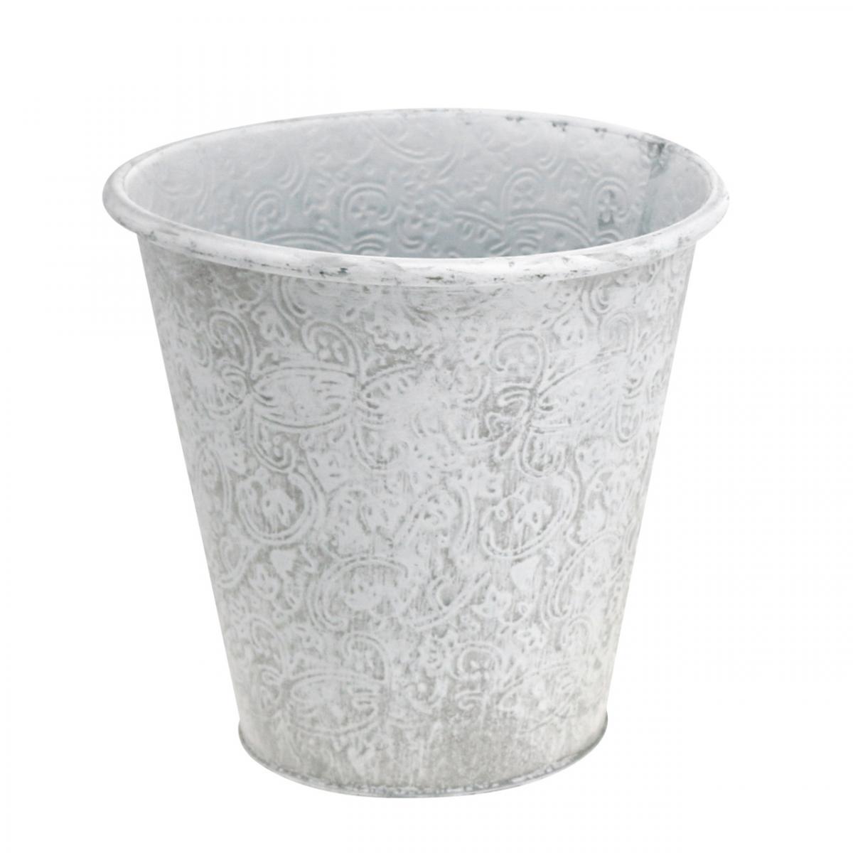 Pflanzgefäß, Übertopf mit Ornamenten, Metalldeko Weiß, Grau Ø20,5cm H19,5cm