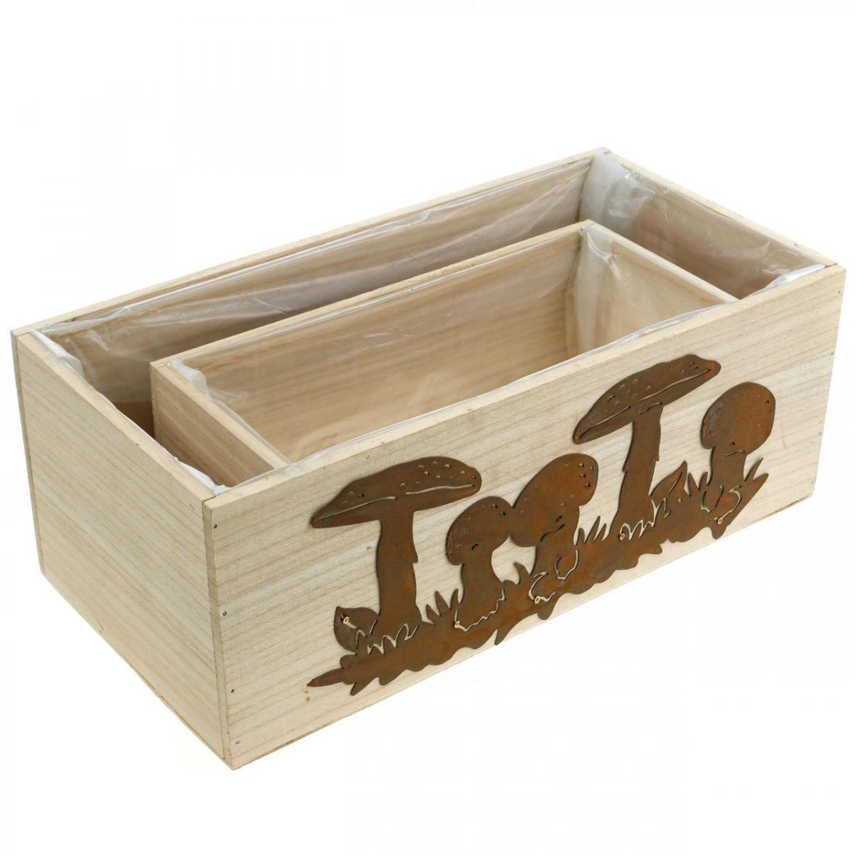 Pflanzkasten-Set, Holzkisten mit Pilzen, Herbstdeko Edelrost L40/30cm 2er-Set