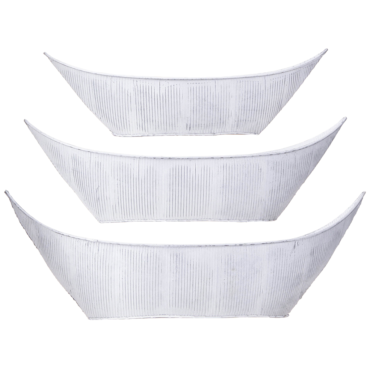 Pflanzschale Schiffchen Metall Weiß Silber 54,5/48/42cm Set 3St