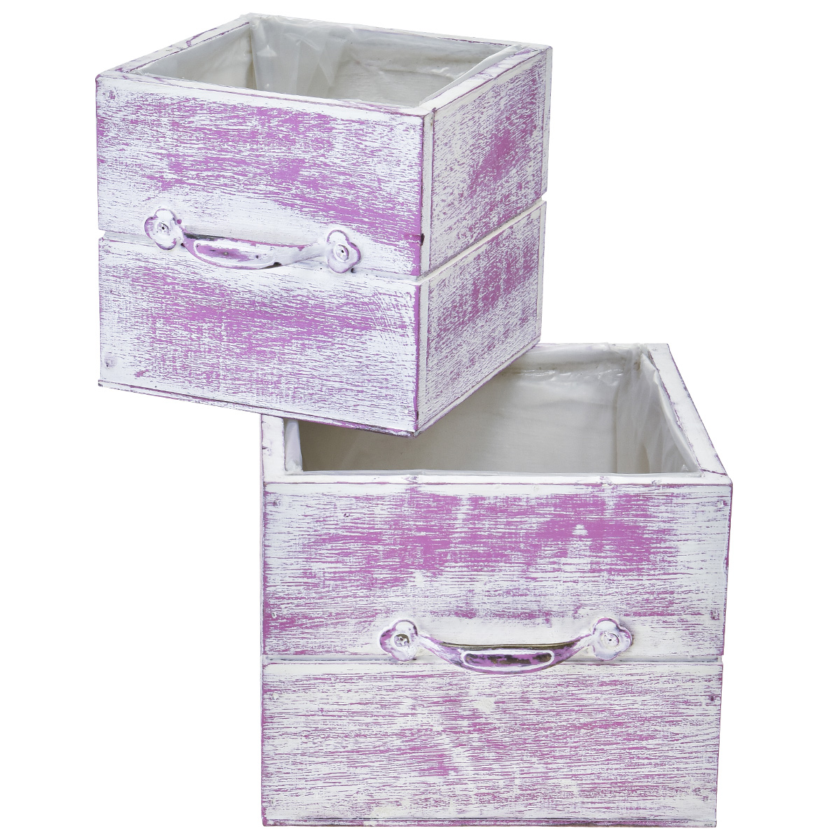 Produktname: Pflanzschublade mit Griff Rosa Weiß Holz 12/15cm 2er-Set