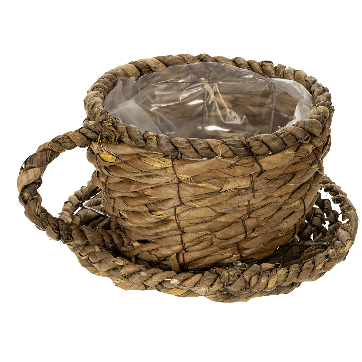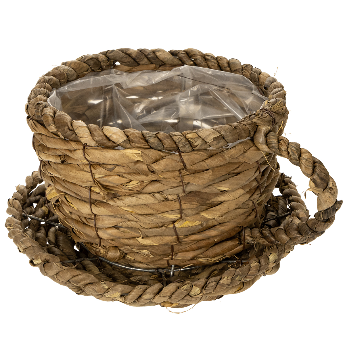 Pflanztasse mit Unterteller Kleiner Pflanzkorb aus Stroh Ø17cm H13cm
