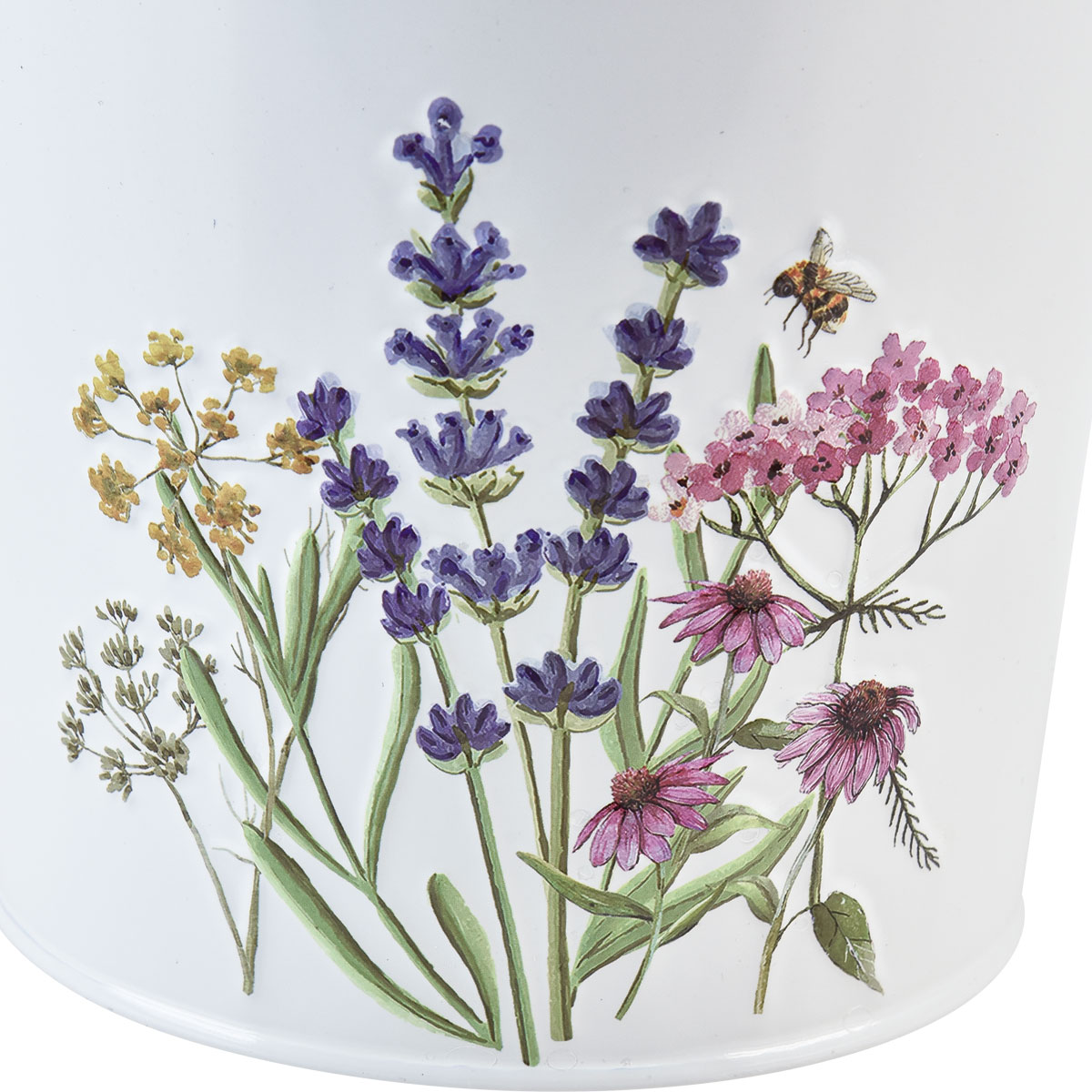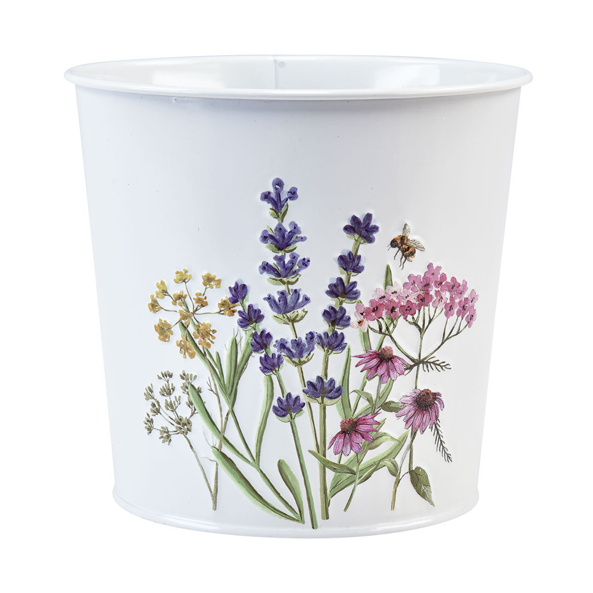 Die Prägung aus blühendem Dill, Lavendel, Oregano, Echinacea und Biene lädt direkt dazu ein, den Metall-Blumentopf zu bepflanzen. Aber auch Gestecke oder eine Topfpflanze machen sich in dem runden Zinktopf ganz wundervoll!