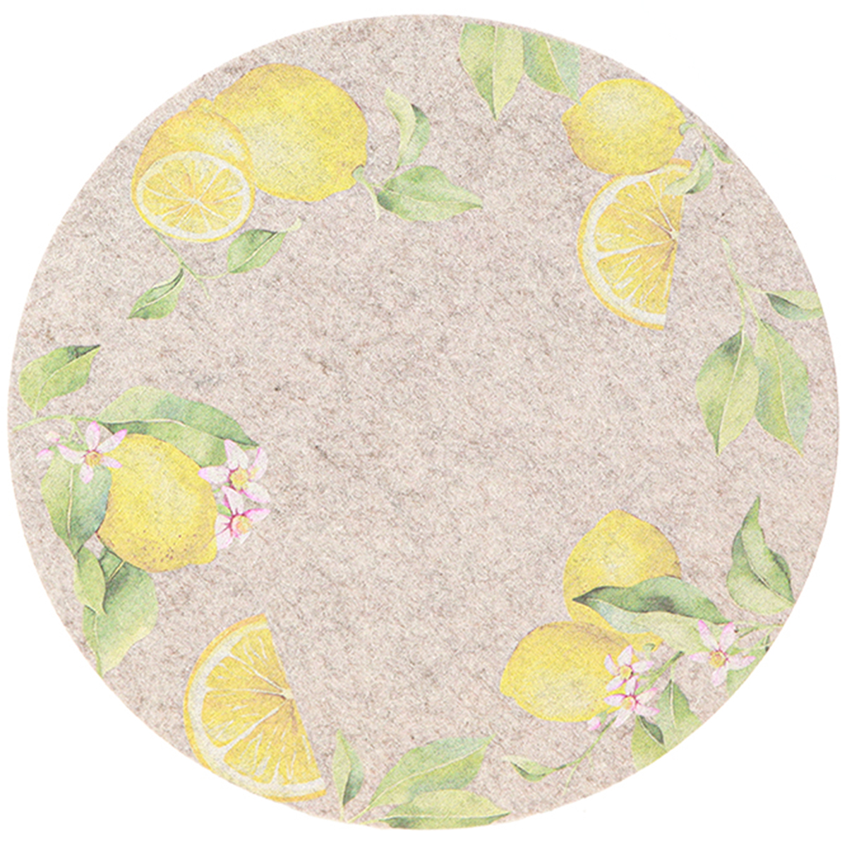 Produktname: Platzdeckchen Rund Grau Filz Sommer Zitrone 31cm 2 St