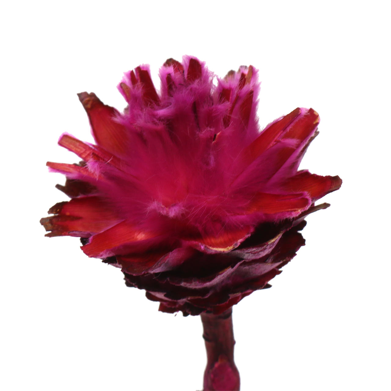 Aufgrund der langen, robusten Stiele lässt sich die Protea Plumosum problemlos verarbeiten und kann etwa ganz einfach in Steckmasse, Stroh oder Blumenerde fixiert werden. Wenn Sie möchten, können Sie die Stiele natürlich auch beliebig kürzen oder komplett entfernen und mit den einzelnen Blüten herbstliche Türkränze oder eine festlich gedeckte Tafel dekorieren. Die exotische Optik und das samtig schimmernde Violett der Blüte passen auch wunderbar in den farbenprächtigen Herbst und bringen sogar in eine stimmungsvolle Weihnachtsdekoration eine unkonventionelle, aber festliche Note hinein.