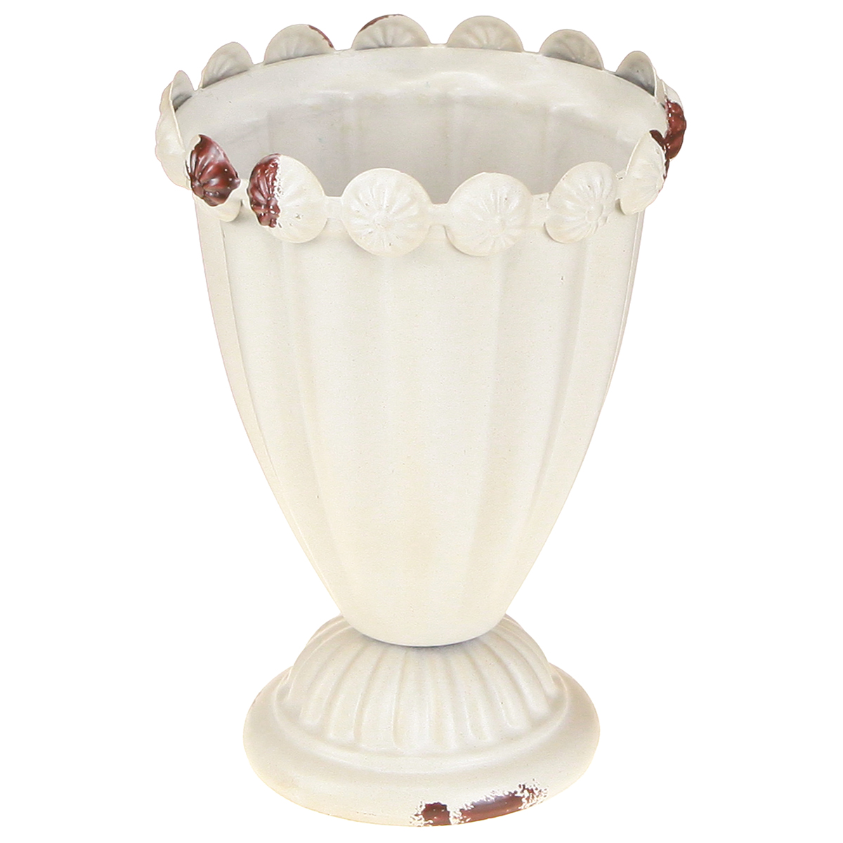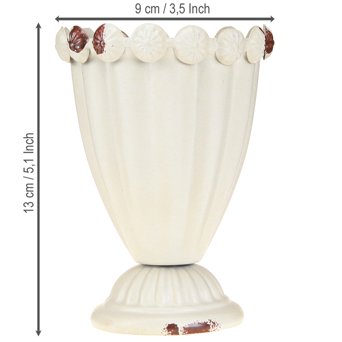 Der cremeweiße Mini-Pokal ist mit einem Zierrand versehen, der aus einzelnen Ornamenten besteht. Diese ähneln einer Blüte, was geradezu zum Schmücken mit Blumen einlädt.