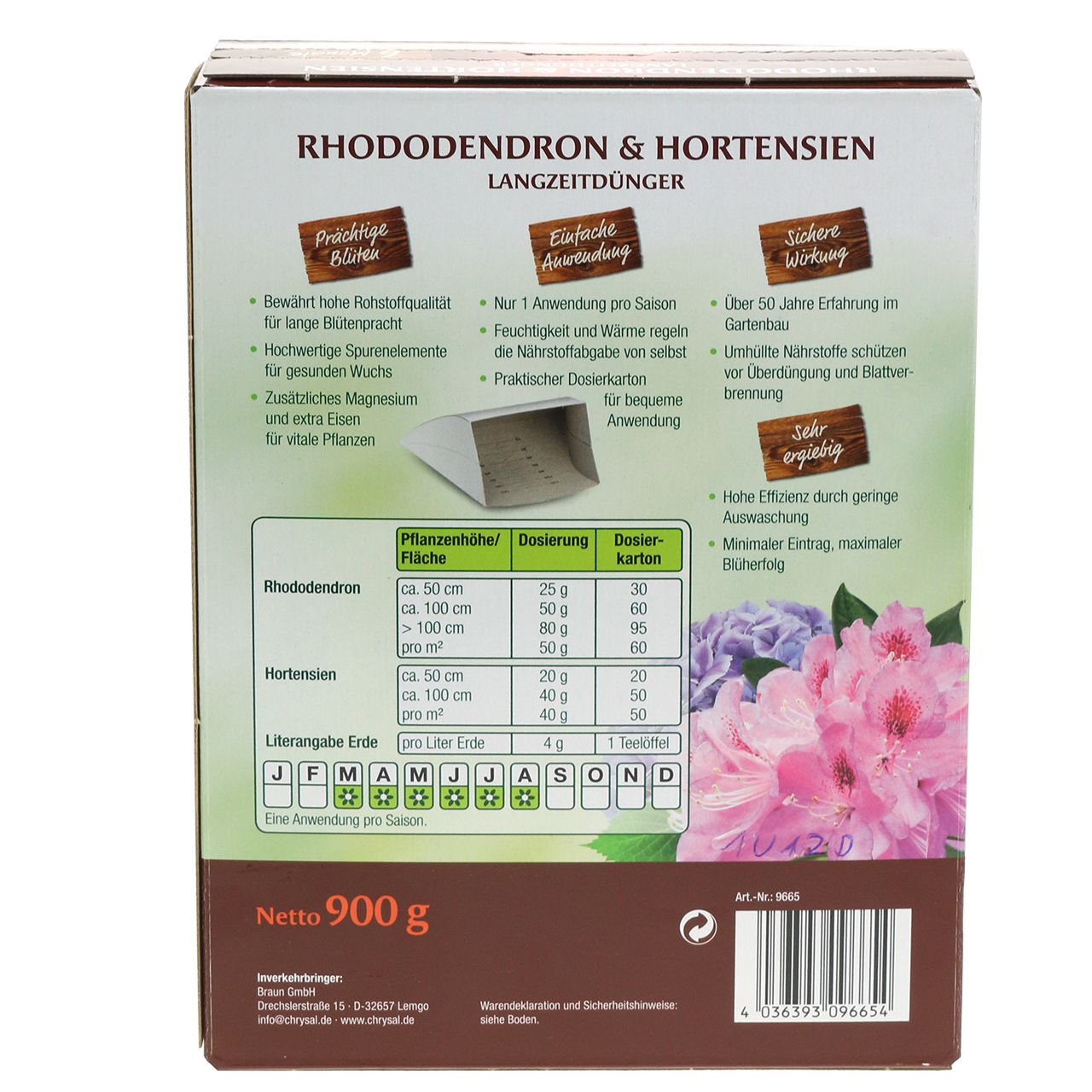 Chrysal Rhododendron & Hortensien Langzeitdünger ist ein NPK Dünger mit zusätzlichen Spurenelementen und extra Magnesium.