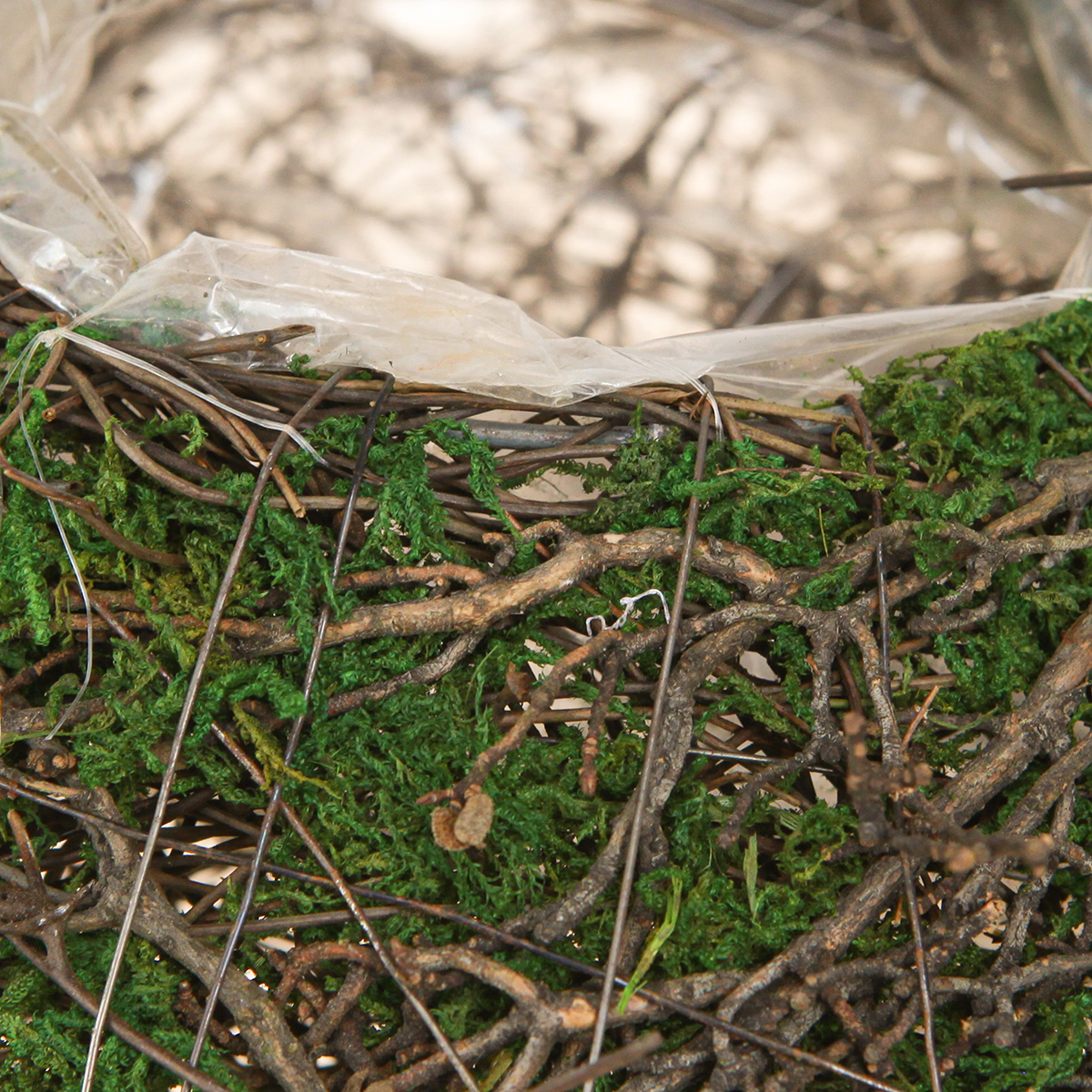 Material: Reben, Metall, Moos, Zweige, Kunststoff (Folie)