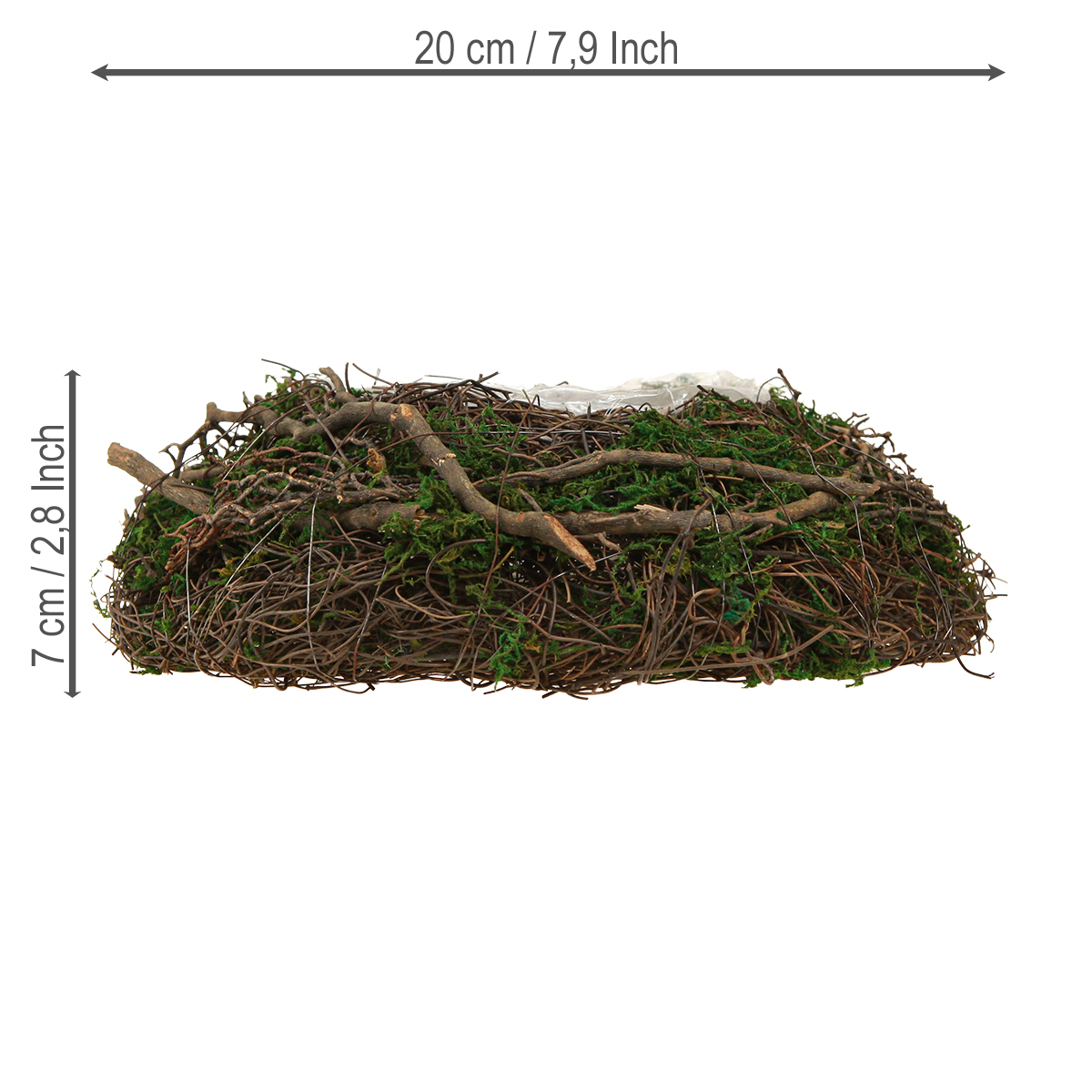 - Material: Moos, Zweige und Reben auf Metallgerüst