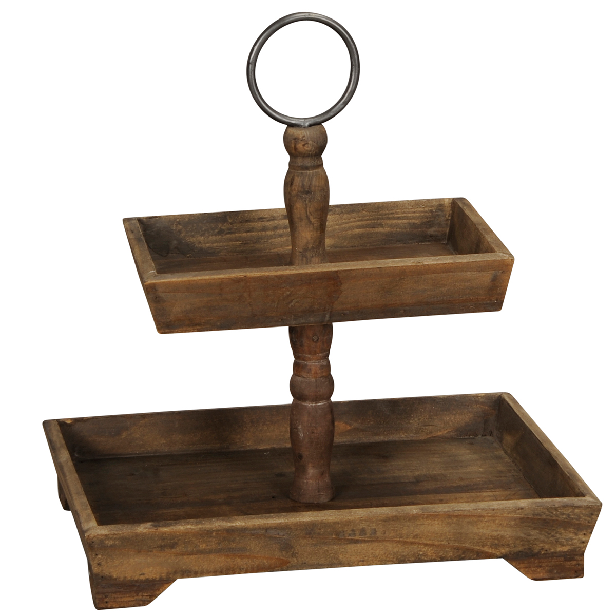 Rustikaler Holz-Etagenständer mit zwei Ebenen und Metallgriff – Perfekt für Vintage-Deko 44cm