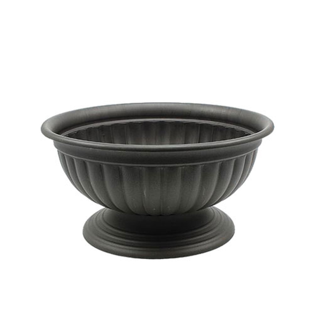 Die Schale mit Fuß in Anthrazit hat einen Außendurchmesser von circa 26 Zentimetern und einen Innendurchmesser von etwa 22 Zentimetern. Die Höhe beträgt dabei ungefähr 15,5 Zentimeter.