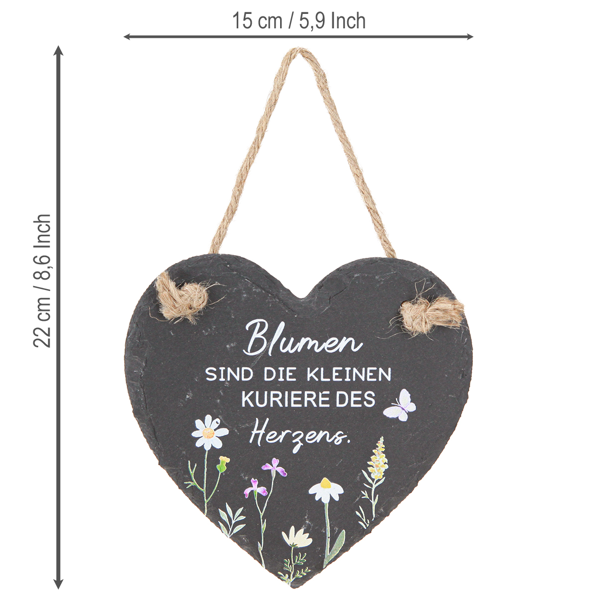 Schiefer Deko Herz zum Hängen „Blumen sind“ 15cm 3St
