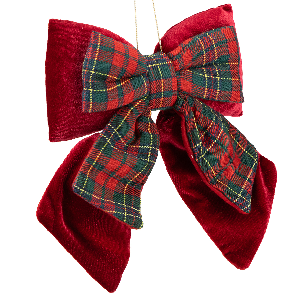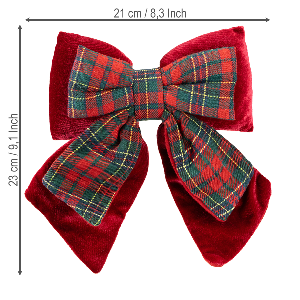 Produktname: Schleife Rot Schottisch kariert Samtschleife indoor 21×23cm