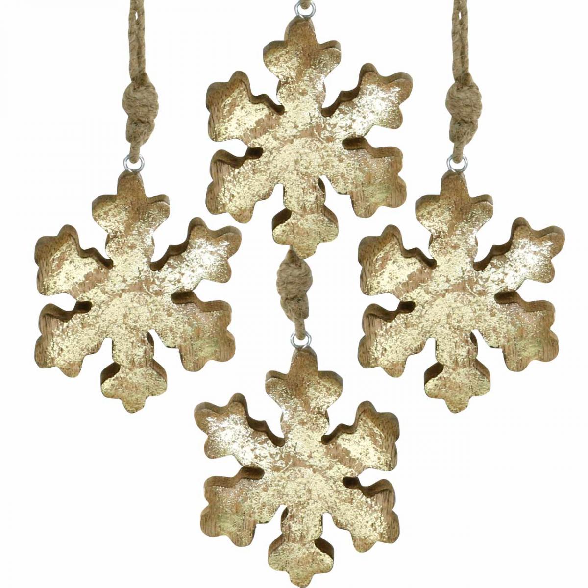 Produktname: Schneeflocke Mangoholz Natur, Golden Schneekristall Ø10cm 6St