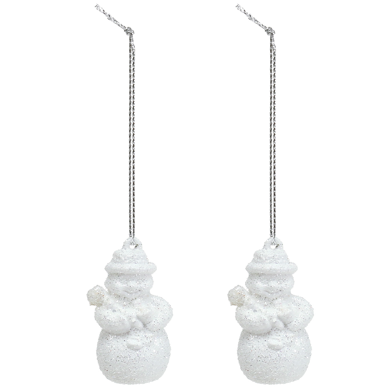 Schneemann Weiß mit Glimmer als Hänger 4,5cm 12St