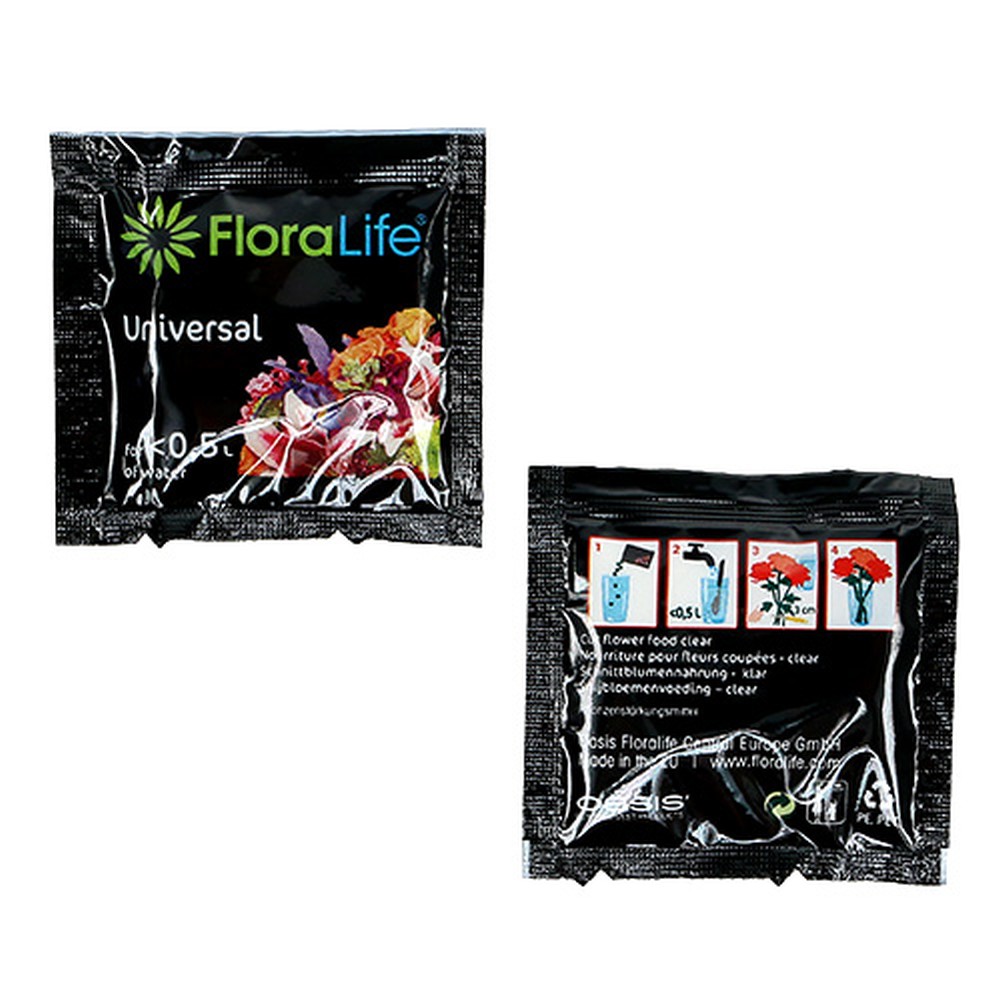 In dem großen Paket befinden sich 1000 einzelne Päckchen zu je 3,5 Gramm für 0,5 Liter Wasser. Jedes Päckchen hat ungefähr die Maße 5 x 5,5 Zentimeter. So können Sie die Nährstoffpäckchen wunderbar auf die Blumenseide der Blumengebinde für Ihre Kunden oder auch als Werbegeschenk auf Karten kleben.