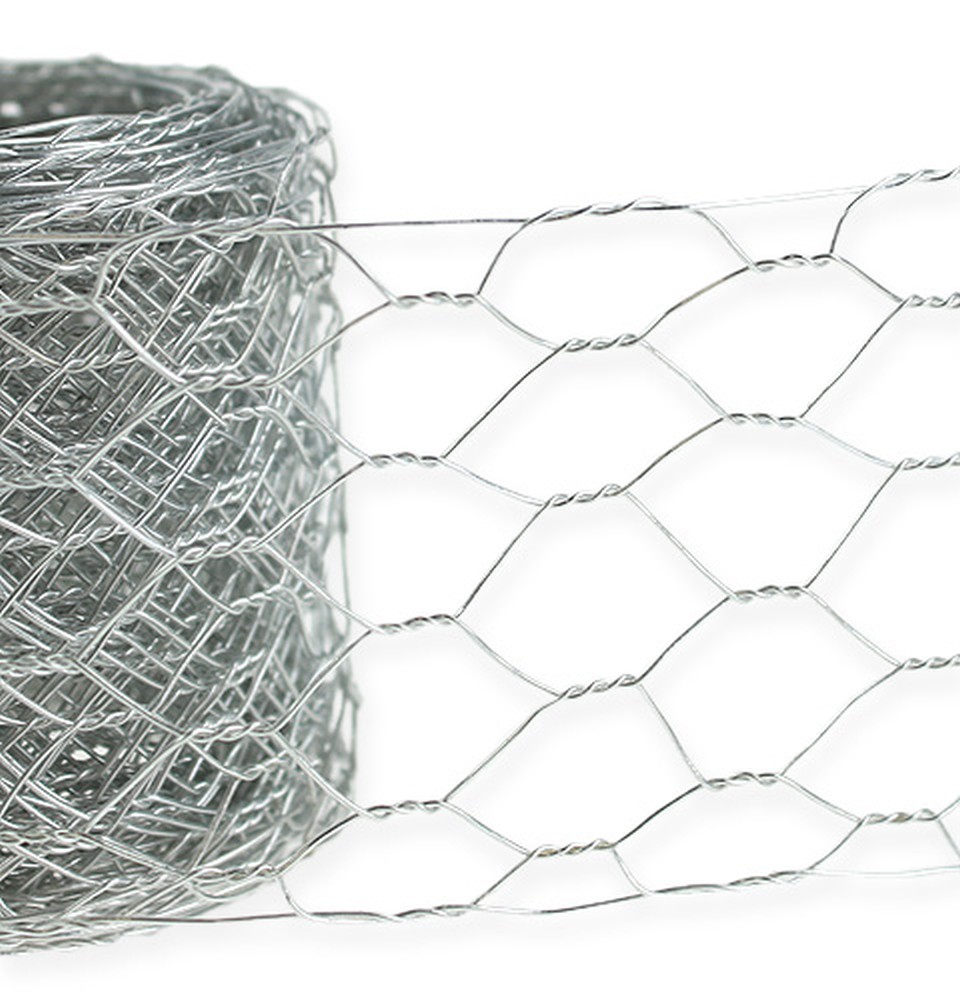 Das silberne Sechseckgeflecht ist zu einer Rolle gewickelt und misst etwa 5 Zentimeter in der Breite und circa 5 Meter in der Länge. Das Flechtwerk ist flexibel und sehr einfach zu bearbeiten. Lassen Sie Ihrer Kreativität freien Lauf und entdecken Sie eine Vielzahl von neuen Gestaltungsmöglichkeiten mit diesem Drahtnetz.