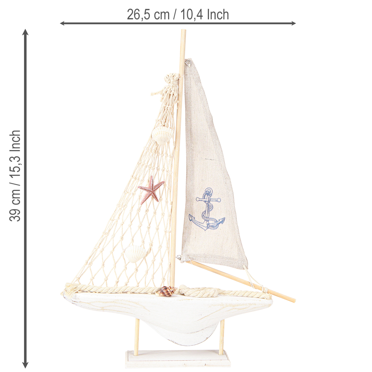 Segelboot Deko Holz Pinie auf Sockel Natur Weiß H39cm