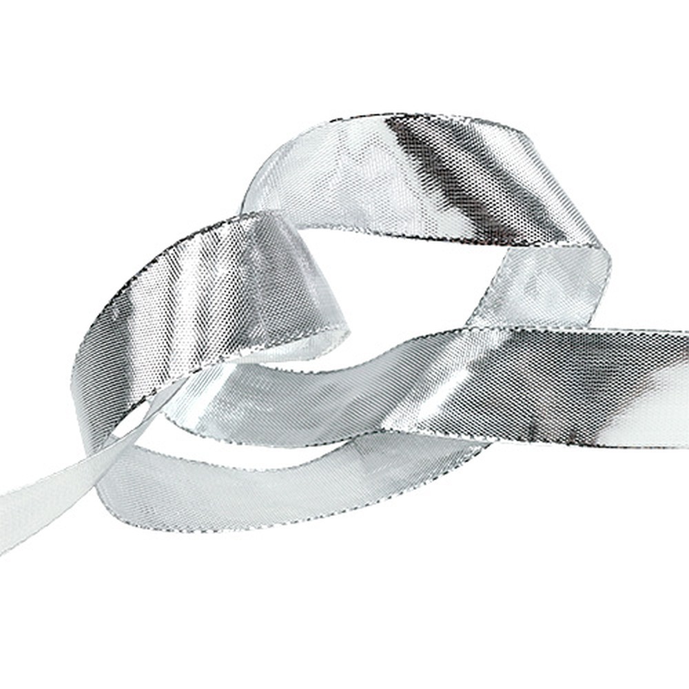 Produktname: Geschenkband Silber mit Drahtkante 25mm 25m