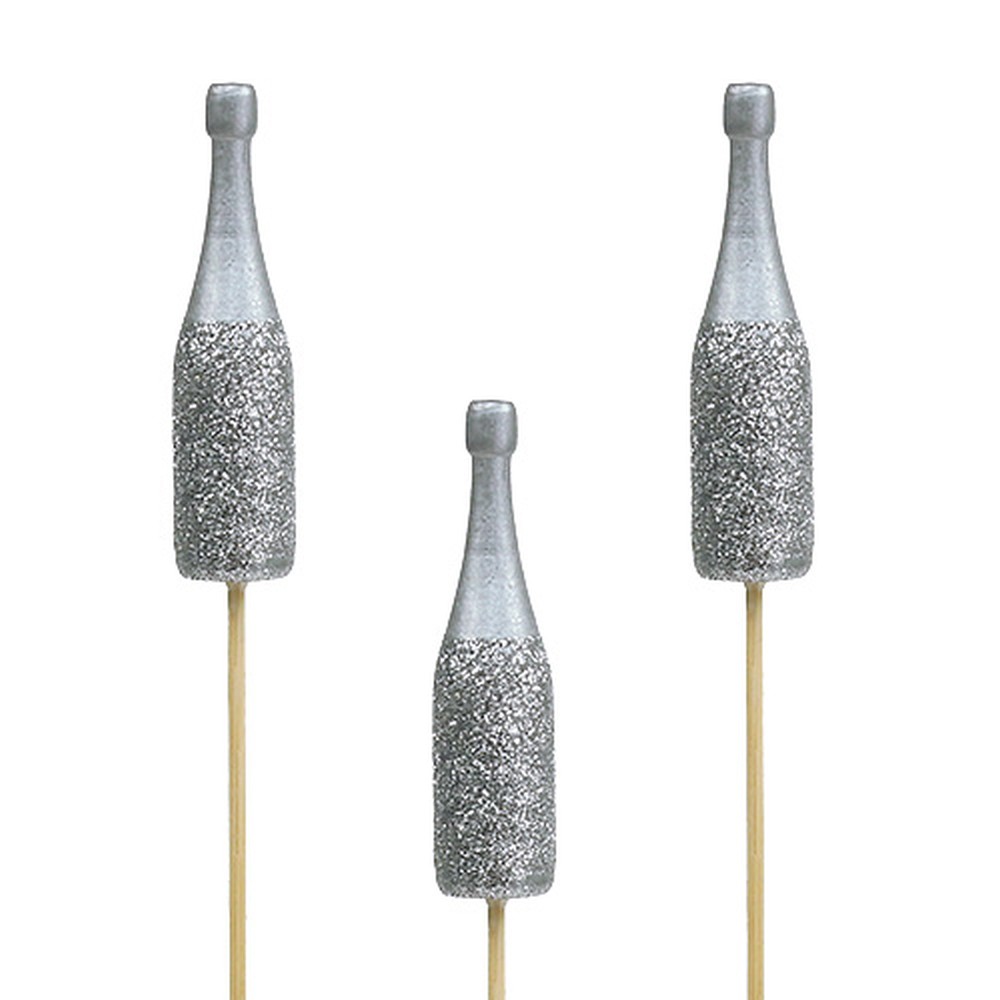 Sektflasche Stecker 7cm mit Glimmer L30cm 8 St
