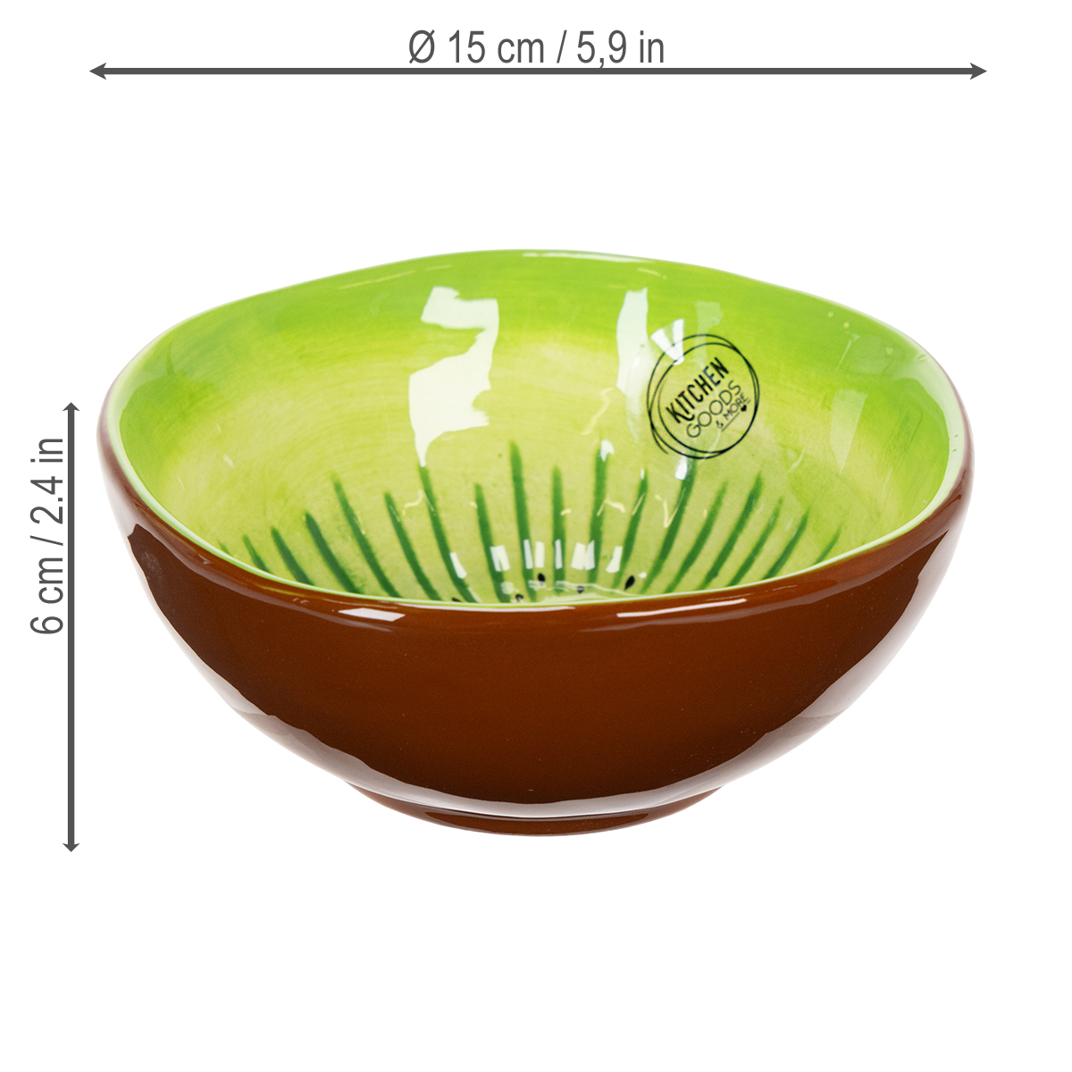 Verleihen Sie Ihrem gedeckten Tisch einen Hauch von Frische und Eleganz! Unsere Keramik Servierschüssel in Kiwi-Optik bezaubert mit ihrem harmonischen Farbmix aus leuchtendem Grün und erdigen Brauntönen. Mit einem Durchmesser von 15 Zentimetern und einer Höhe von 6 Zentimetern ist diese runde Keramikschüssel nicht nur praktisch, sondern auch ein echter Hingucker. Ob für stilvolle Salatdarbietungen, frische Obstpräsentationen oder farbenfrohe Snacks – diese Design Schüssel aus Keramik bringt Schwung auf Ihren Tisch. Dabei passt sie perfekt in den modernen Wohnstil und ist ebenso vielseitig in klassischer Tischdekoration einsetzbar. Natürlich und strapazierfähig – ideal für den Innenbereich und geschützten Außenbereich.