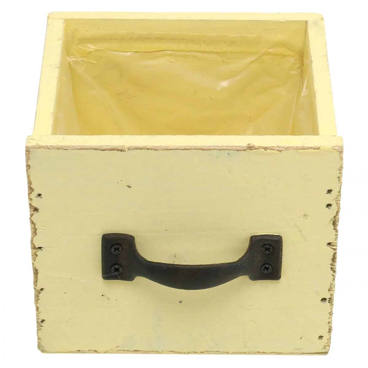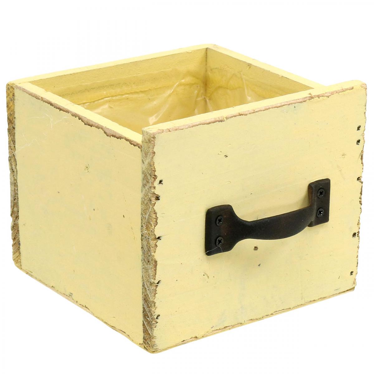 Shabby Deko Schublade zum Bepflanzen Gelb Holz 12,5×12,5×10cm