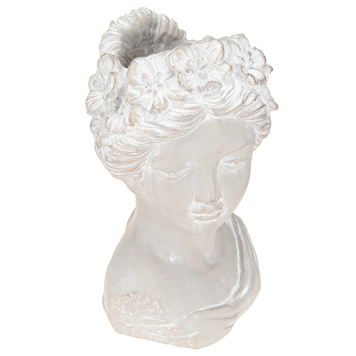 Skulptur Frauenbüste Steinguss Übertopf Grau Antik 15×14×25cm