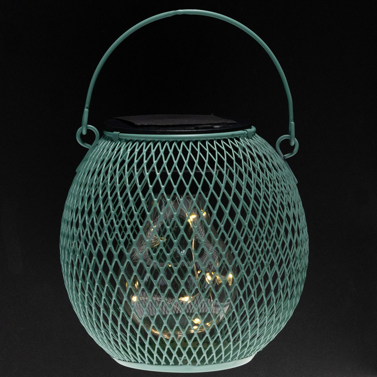 Sie suchen nach der perfekten Beleuchtung für Gartenpartys und entspannte Abende auf der Terrasse? Diese Solarlaterne für den Garten vereint moderne Technik mit dekorativem Design. Das warme LED-Licht sorgt für eine stimmungsvolle Atmosphäre – ob auf dem Balkon, im Garten oder während eines gemütlichen Grillabends. Das filigrane, türkise Metallgehäuse mit seiner runden Form strahlt eine zeitlose Eleganz aus, die sich wunderbar in verschiedene Einrichtungsstile einfügt. Ganz ohne Stromanschluss macht die Solarlaterne nicht nur Eindruck, sondern ist auch ausgesprochen umweltfreundlich. Praktischer geht’s kaum! Nach ein paar Sonnenstunden gibt die einladende Außenleuchte ab der Dämmerung ihre Energie zurück – und taucht die Umgebung in ein angenehmes, warmweißes Licht.