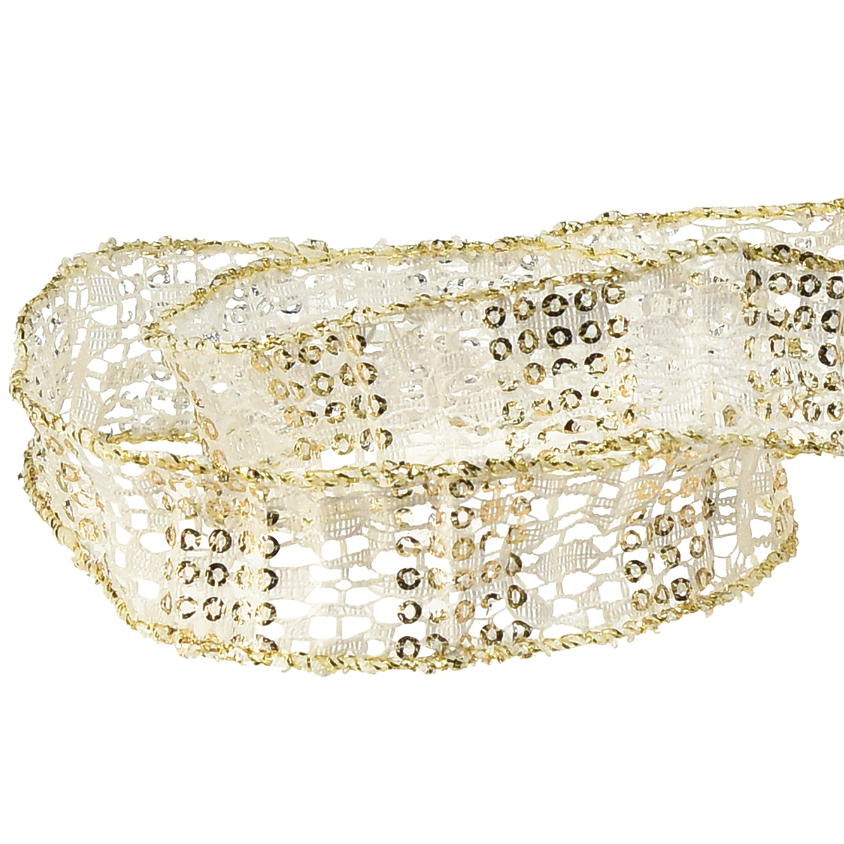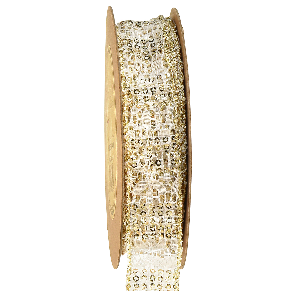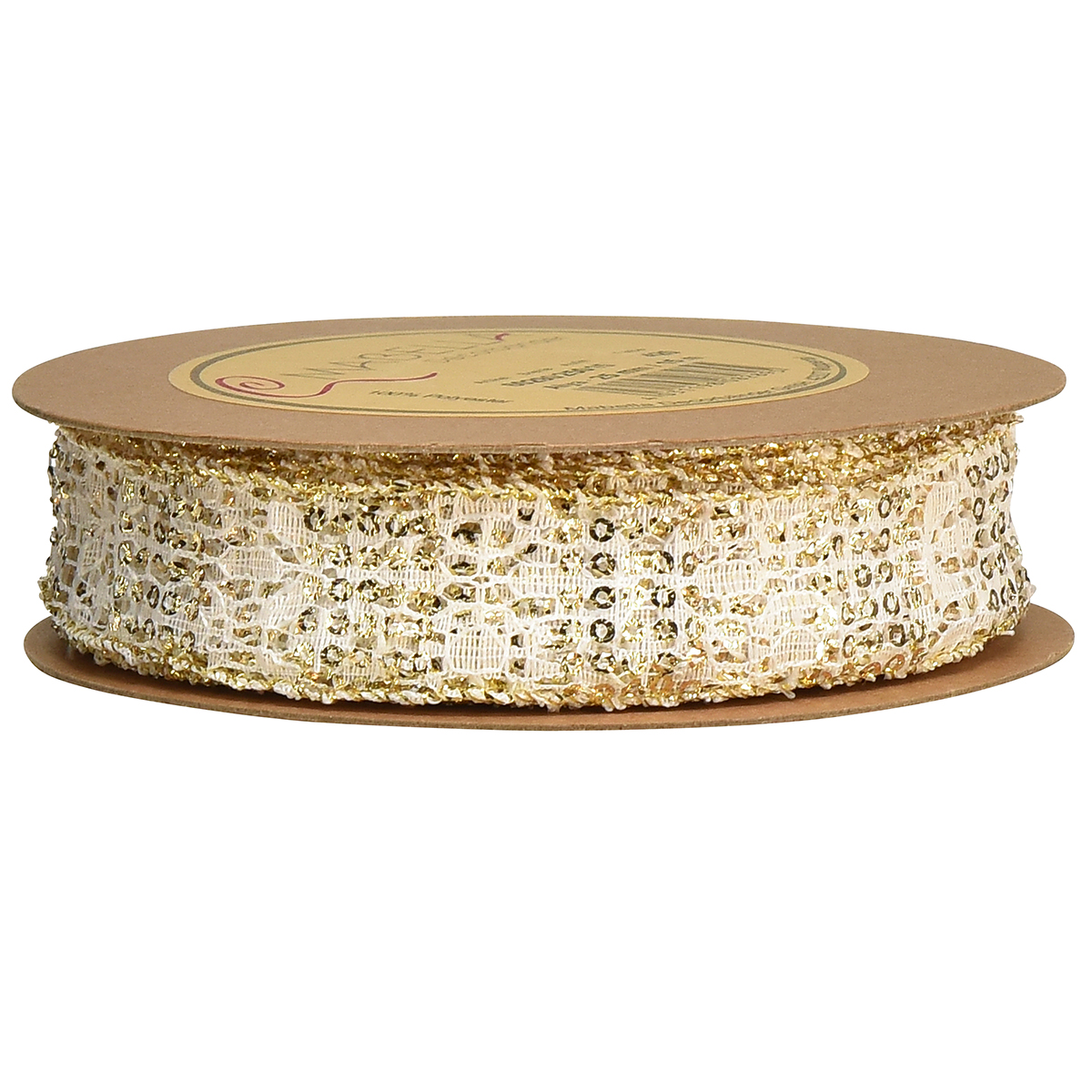 Produktname: Spitzenband Weiß mit Gold-Akzenten Dekoband Spitze 25mm 15m